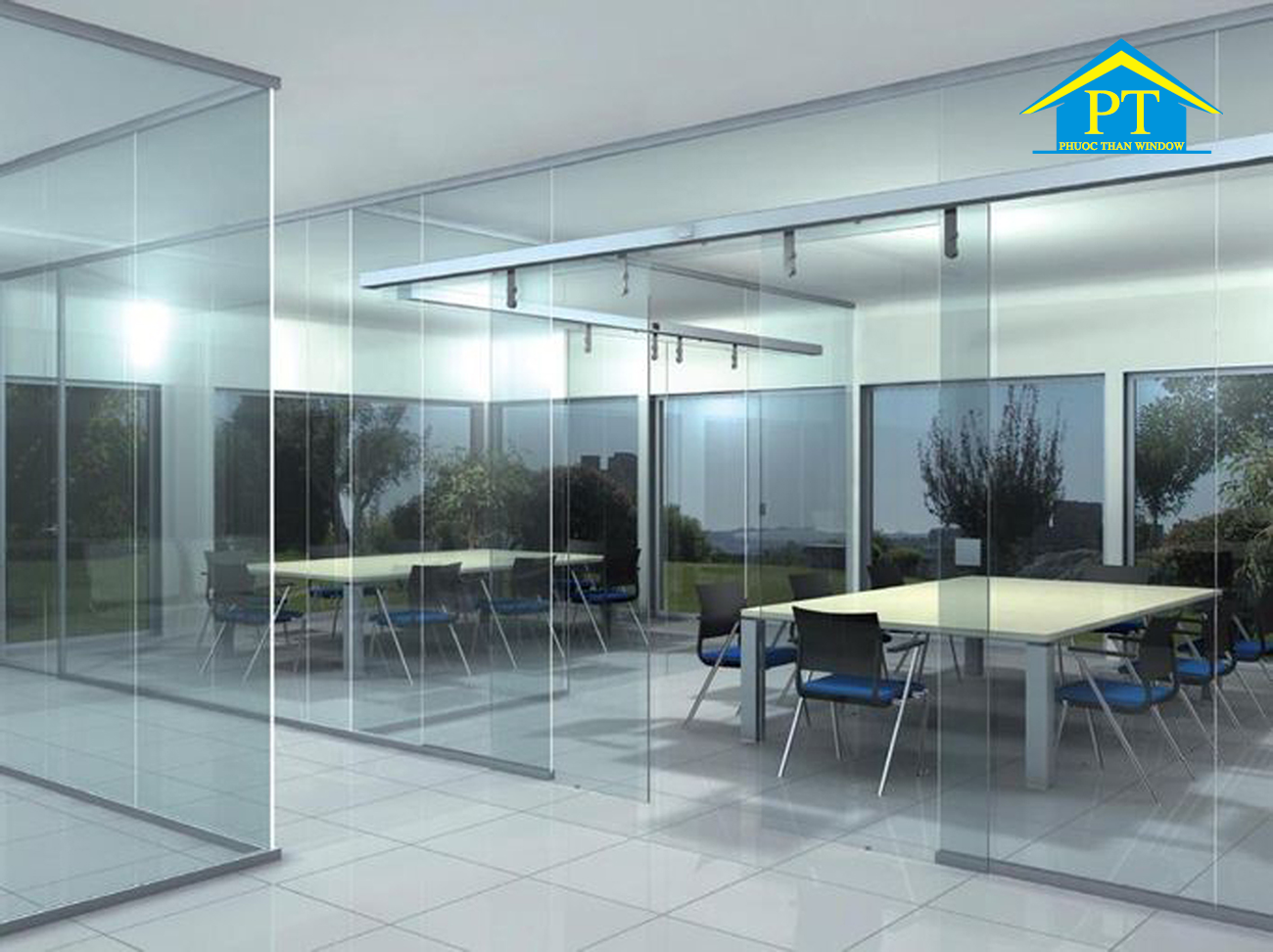 - Vách ngăn kính cường lực chống va đập, chống suất nhiệt, cách âm tốt