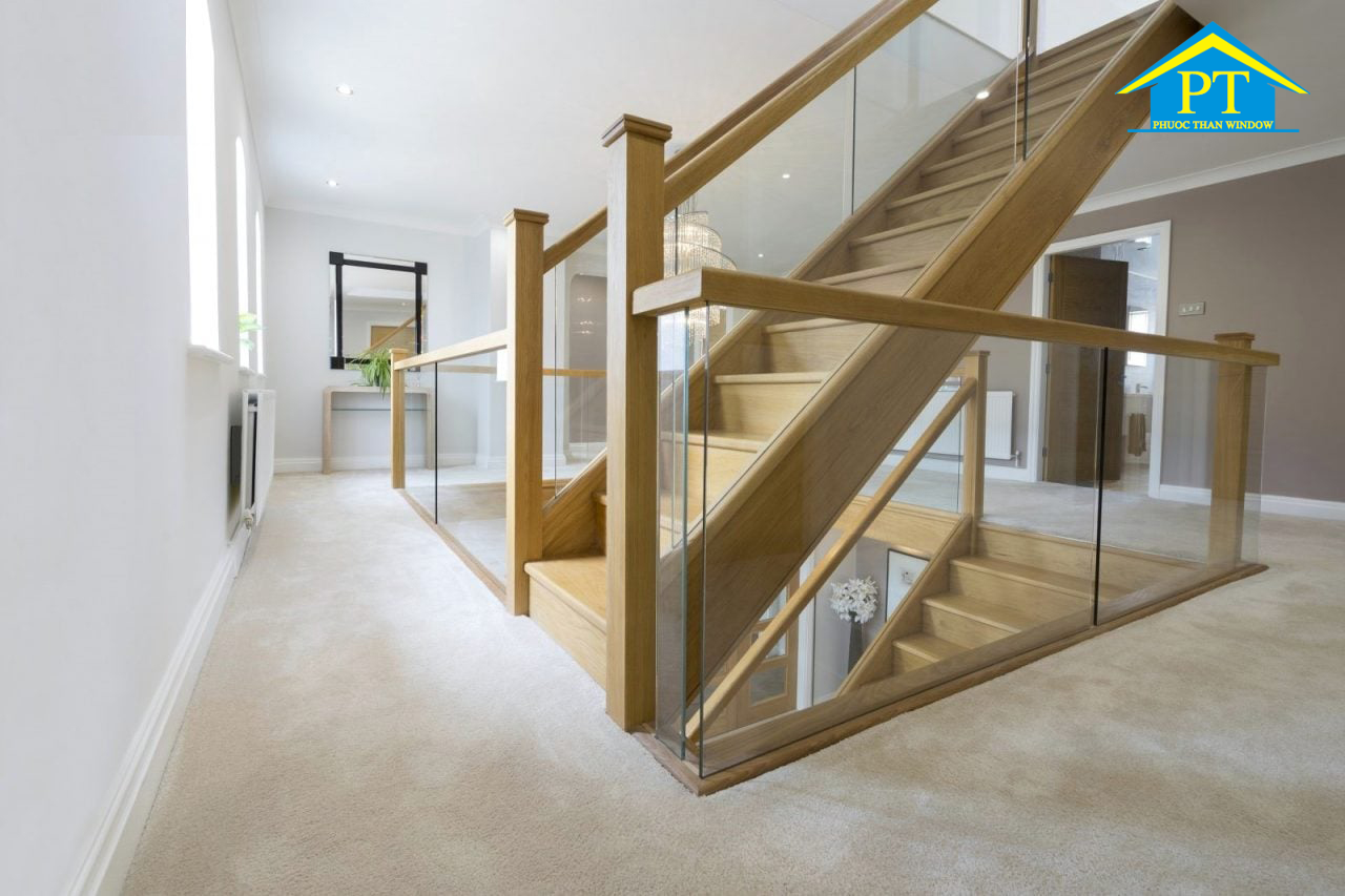 – Theo hình dáng: có cầu thang kính cong; cầu thang kính thẳng.