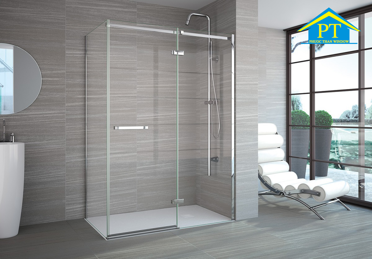 Phòng tắm kính được bao bọc bởi các vách ngăn bằng kính cường lực dày 8mm đến 12mm. Các vách kính này được kết nối chặt chẽ với nhau nhờ các phụ kiện inox. Thêm vào những khe hở được lấp đầy. Để tăng độ kín cho phòng tắm cần kết hợp thêm gioăng cao su kép.