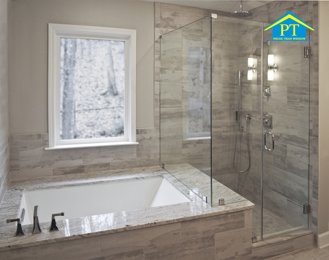 - Vách tắm kính cửa lùa
